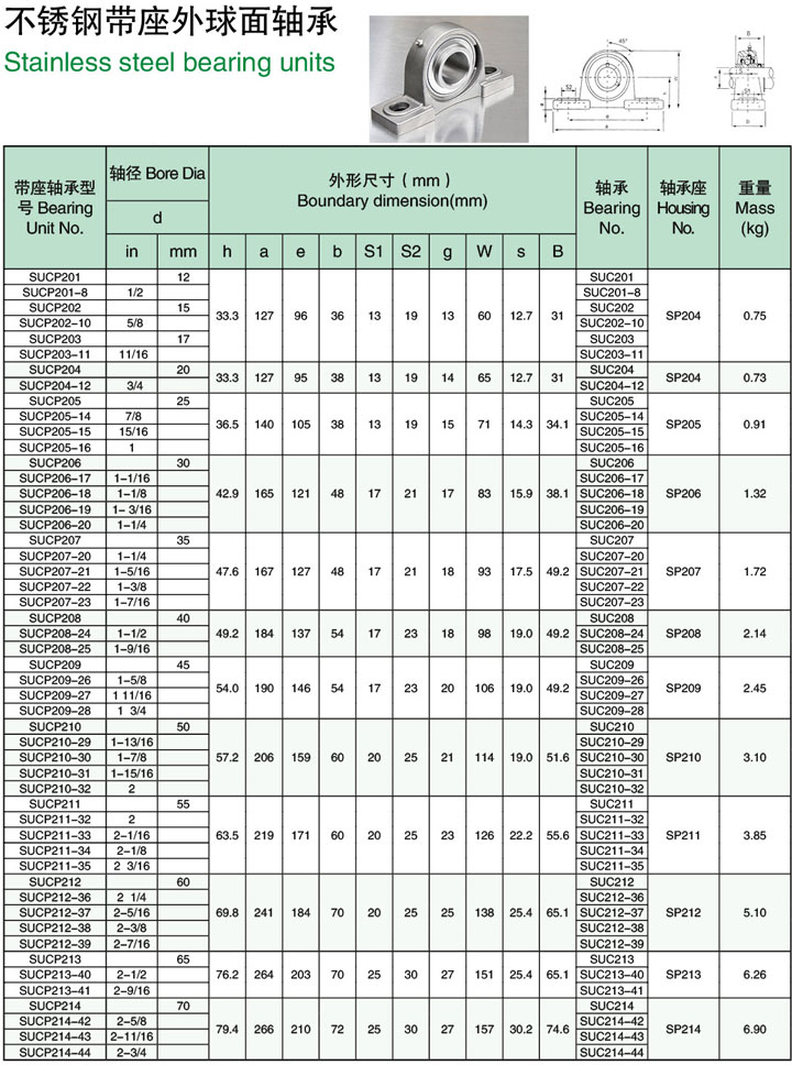 不(bu)銹(xiu)鋼(gang)外(wai)球(qiu)面軸(zhou)(zhou)(zhou)(zhou)(zhou)承(cheng)(cheng)(cheng)軸(zhou)(zhou)(zhou)(zhou)(zhou)向游隙(xi)的大小,對軸(zhou)(zhou)(zhou)(zhou)(zhou)承(cheng)(cheng)(cheng)能否(fou)正(zheng)常(chang)工作關系很大,當軸(zhou)(zhou)(zhou)(zhou)(zhou)向游隙(xi)過小時(shi),溫升(sheng)較高;軸(zhou)(zhou)(zhou)(zhou)(zhou)向游隙(xi)較大時(shi),軸(zhou)(zhou)(zhou)(zhou)(zhou)承(cheng)(cheng)(cheng)容易損壞。故在安裝(zhuang)和(he)運轉時(shi)要(yao)特別(bie)注意調整軸(zhou)(zhou)(zhou)(zhou)(zhou)承(cheng)(cheng)(cheng)的軸(zhou)(zhou)(zhou)(zhou)(zhou)向游隙(xi),必要(yao)時(shi)可(ke)以預(yu)過盈安裝(zhuang),以增加(jia)軸(zhou)(zhou)(zhou)(zhou)(zhou)承(cheng)(cheng)(cheng)的剛性。 不(bu)銹(xiu)鋼(gang)帶(dai)座外(wai)球(qiu)面軸(zhou)(zhou)(zhou)(zhou)(zhou)承(cheng)(cheng)(cheng)是(shi)將滾動(dong)軸(zhou)(zhou)(zhou)(zhou)(zhou)承(cheng)(cheng)(cheng)與軸(zhou)(zhou)(zhou)(zhou)(zhou)承(cheng)(cheng)(cheng)座結(jie)合在一起的一種軸(zhou)(zhou)(zhou)(zhou)(zhou)承(cheng)(cheng)(cheng)單(dan)元。大部分不(bu)銹(xiu)鋼(gang)外(wai)球(qiu)面軸(zhou)(zhou)(zhou)(zhou)(zhou)承(cheng)(cheng)(cheng)都是(shi)將外(wai)徑做成球(qiu)面,與帶(dai)有球(qiu)狀(zhuang)內孔的不(bu)銹(xiu)鋼(gang)外(wai)球(qiu)面軸(zhou)(zhou)(zhou)(zhou)(zhou)承(cheng)(cheng)(cheng)座安裝(zhuang)在一起,結(jie)構形式多樣,通用性和(he)互換性好。